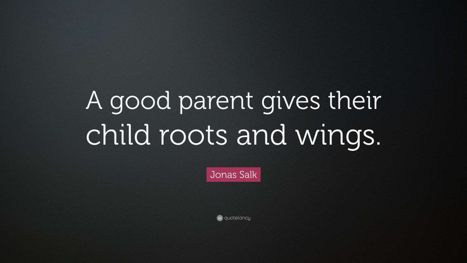 Jonas Salk Quote Good Parents Give Their Children Roots And Wings Roots To Know Where Home Is Wings To Fly Away And Exercise What S Bee